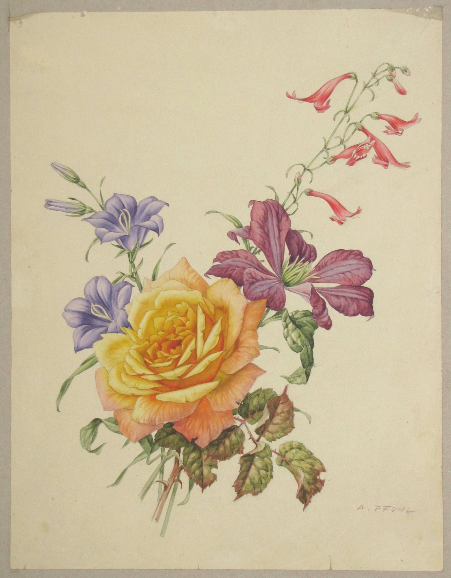 Blumenaquarelle als Vorlage für die Ausbildung von Glas- und Porzellanmalern im Naturzeichnen